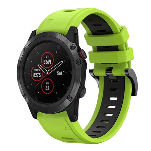 Banda de Reloj Silicona Deportiva para Garmin Fenix 5X Plus 26mm (Verde Lima + Negro)