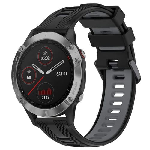 Banda de Reloj de Silicona para Garmin Fenix 6 Solar Sports (Negro + Gris)