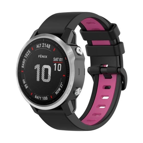 Correa Silicone Sports Band para Garmin Fenix 6S Pro 22mm (Negro+Rosa)