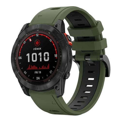 Banda de Reloj silicona deportiva para Garmin Fenix 7X 26mm (Verde Militar + Negro)