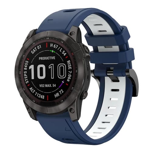 Banda de Reloj Silicona para Garmin Fenix 7X Solar 26mm Deportiva Dos Colores (Azul Medianoche + Blanco)