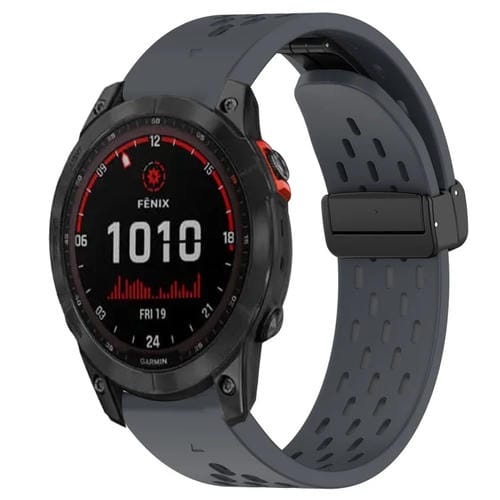 Correa de Reloj para Garmin Fenix 7X Solar 26mm silicona con orificio y hebilla plegable (Gris Oscuro)