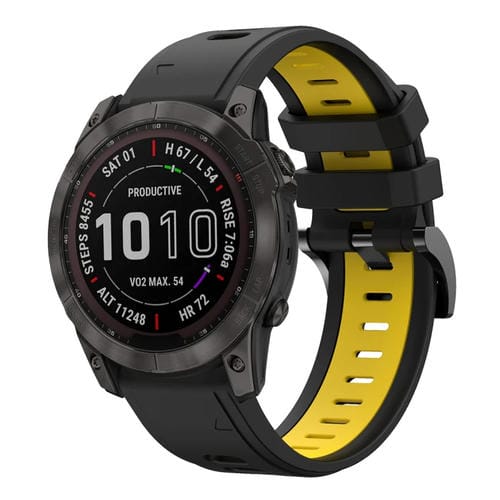 Banda de Reloj para Garmin Fenix 7X Solar 26mm Silicona Deportiva Dos Colores (Negro + Amarillo)