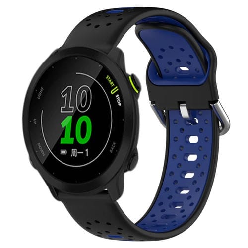 Pour Garmin Forerunner 158 20 mm bracelet de montre en silicone respirant bicolore (noir + bleu)