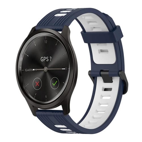 Banda de Reloj para Garmin Move Style 20mm Silicona Dos Colores (Azul Oscuro+Blanco)
