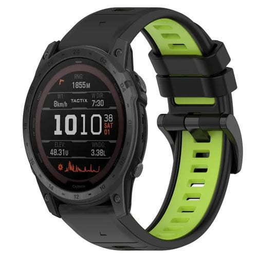 Correa para Garmin Tactix 7 Pro 26mm Silicona Deportiva Bicolor (Negro + Verde Lima)