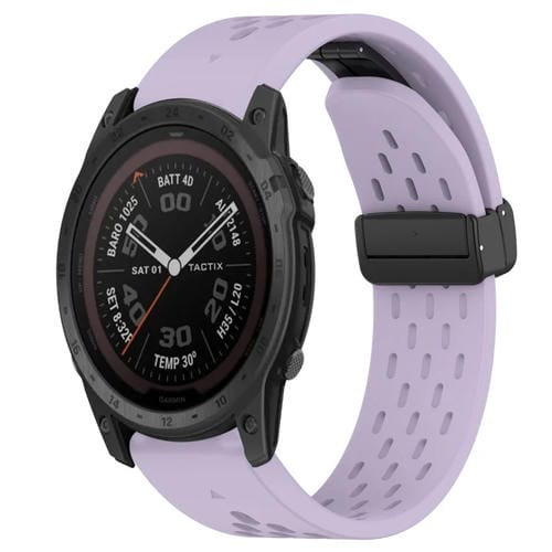 Correa de Silicona para Garmin Tactix 7 Pro con Orificio y Hebilla Plegable de 26mm (Púrpura)