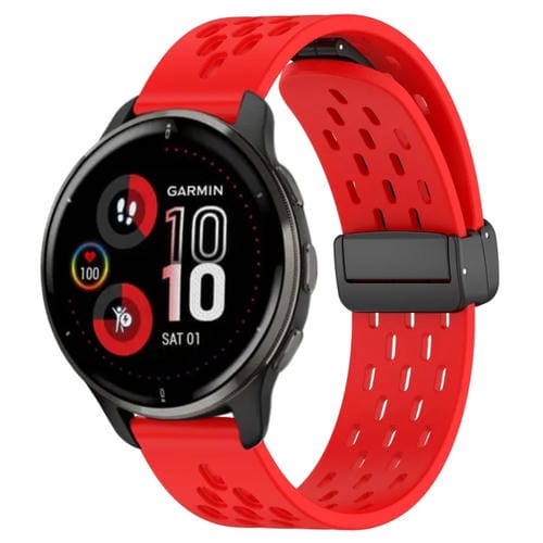 Correa de Silicona para Garmin Venu 2 Plus con Cierre Magnético Plegable de 20mm (Rojo)
