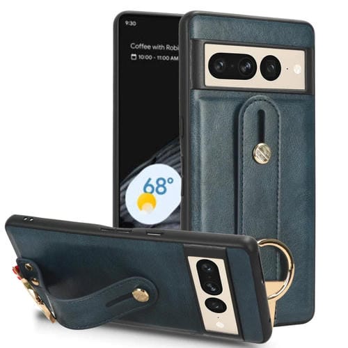 Funda Trasera de Cuero para Google Pixel 7 Muñequera (Azul)