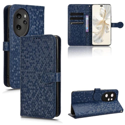 Funda para Honor 100 Pro 5G de Cuero con Textura de Punto de Panal (Azul)
