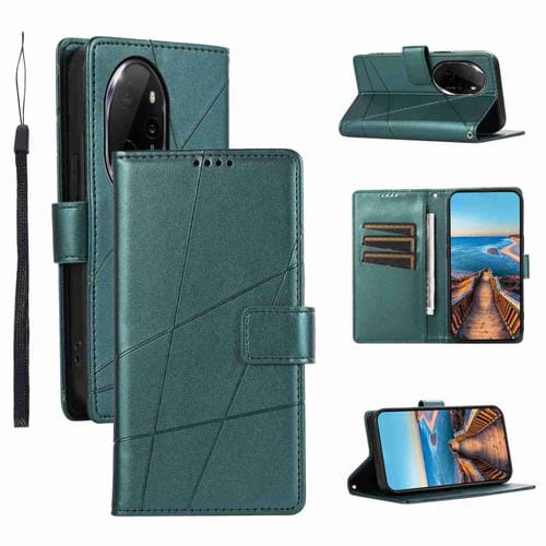 Funda para Teléfono Honor 100 Pro PU con Línea en Relieve y Textura de Cuero Genuino (Verde)