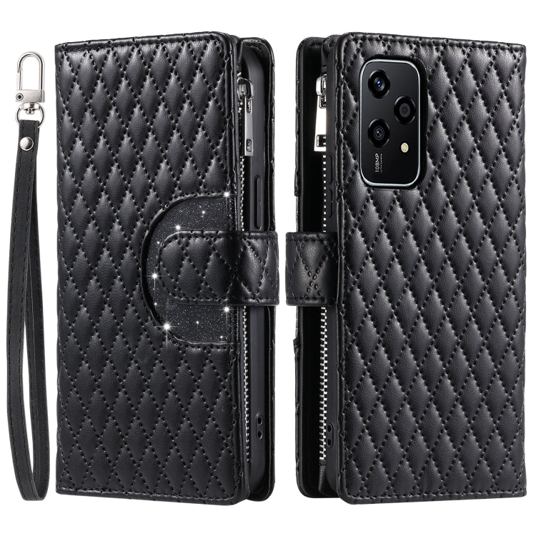 Funda de Cuero para Honor 200 Lite Glitter Lattice Zipper Wallet para Teléfono (Negro)
