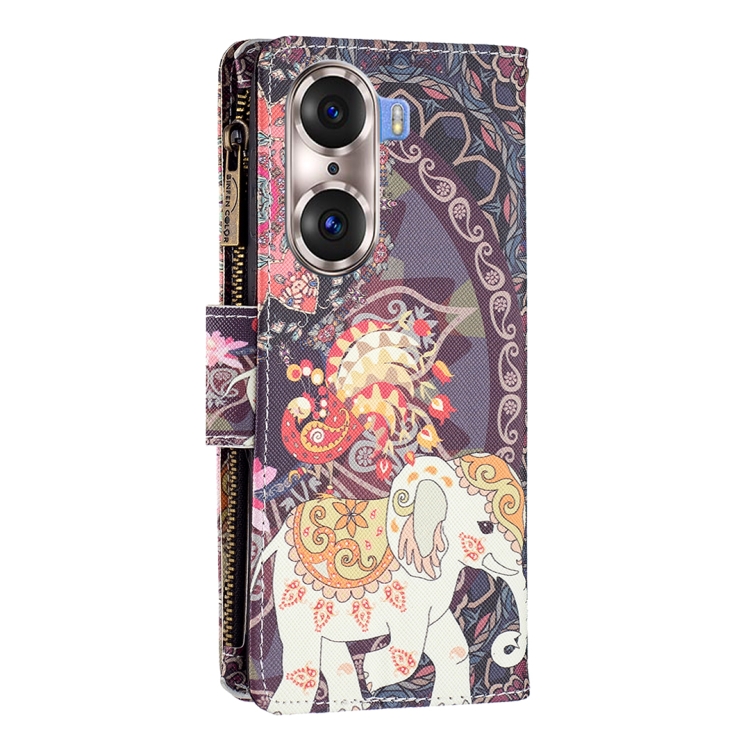 Para Honor 60 Pro Colored Drawing Pattern Zipper Flip Flip Leather Case (elefantes de flores)