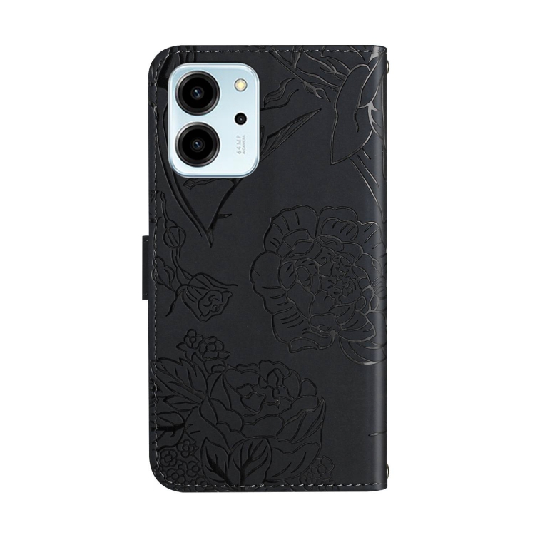 Funda de Cuero para Honor 80 SE HT03 con Tapa en Relieve y Diseño Butterfly (Negro)