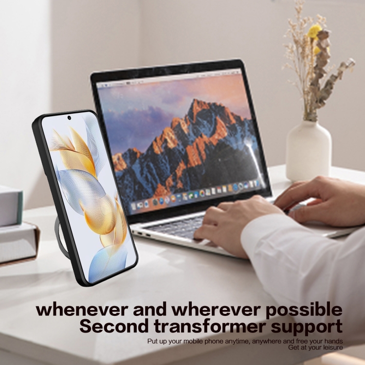 Funda para Honor 90 5G con Soporte Magnético y Escudo Deslizante Textura Cd (Azul)