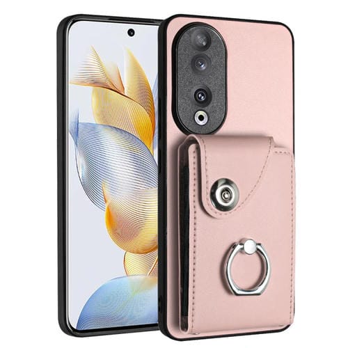 Funda para Honor 90 de PU con Soporte para Anillo y Bolsa para Tarjeta (Rosa)