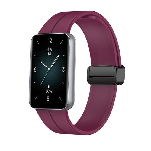 Correa de Silicona para Honor Band 9 con Hebilla Negra Plegable Magnética (Rojo Vino)
