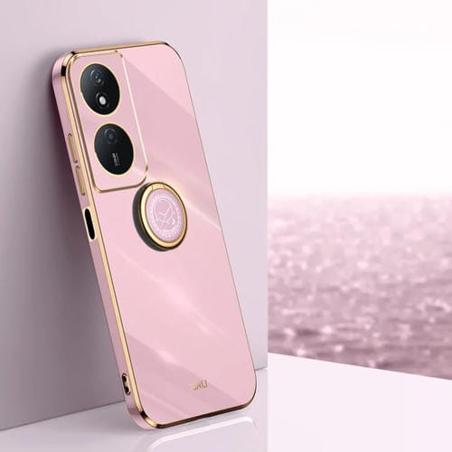 Estuche TPU Electrochapado 6D Xinli para Honor Play 50 Plus 5G con Borde Recto y Soporte para Anillo (Púrpura Cereza)