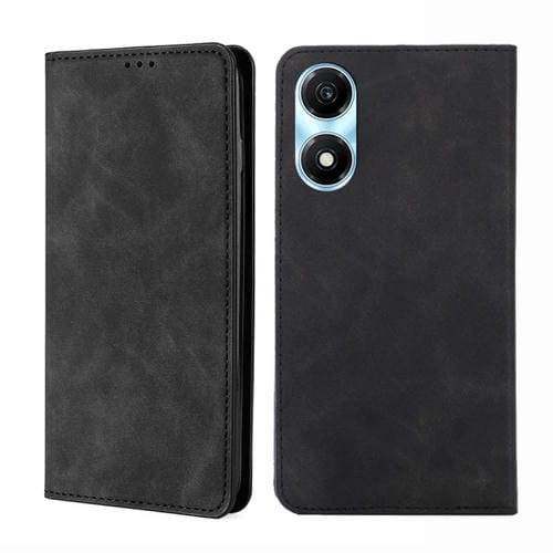 Funda de Cuero Magnética para Honor X5 Plus 4G y Play 40C con Sensación de Piel (Negro)