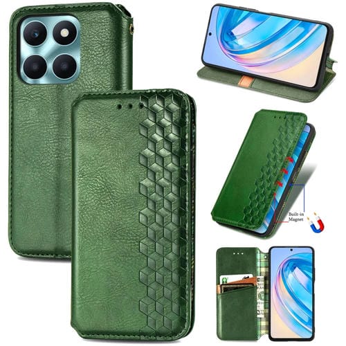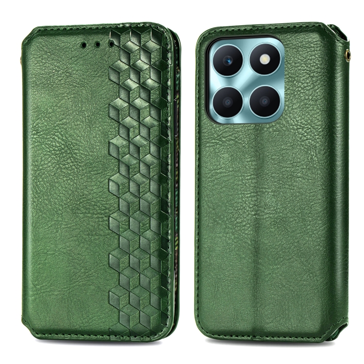 Funda para Honor X6A Cubic Grid Cuero Magnético Prensado (Verde)