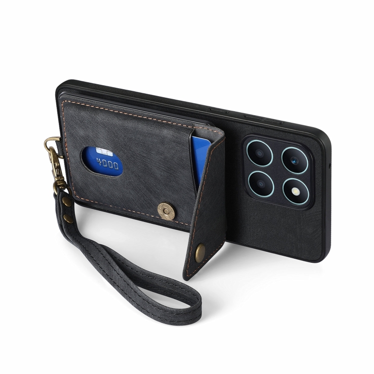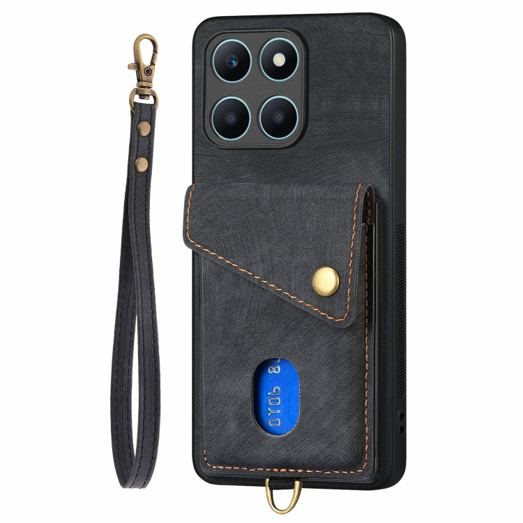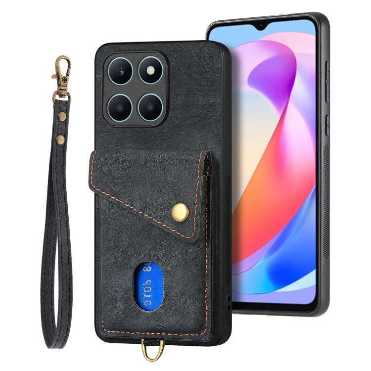 Funda para Honor X6A de Cuero Plegable con Billetera, Tarjeta y Correa (Negro)