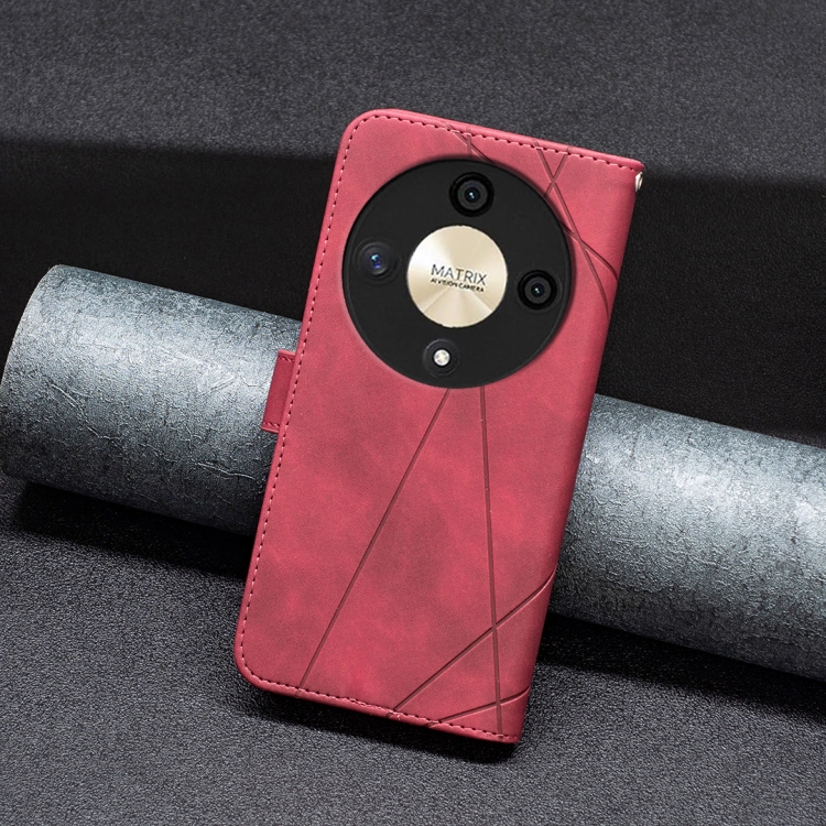 Funda para Honor X9B Magic6 Lite 5G de Cuero con Textura de Rombo y Hebilla Magnética (Rojo)