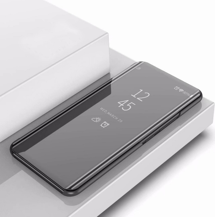 Cubierta Abatible Izquierda y Derecha para Huawei 9X / 9Xpro con Espejo Enchapado y Funda de Soporte (Negro)