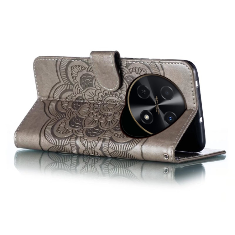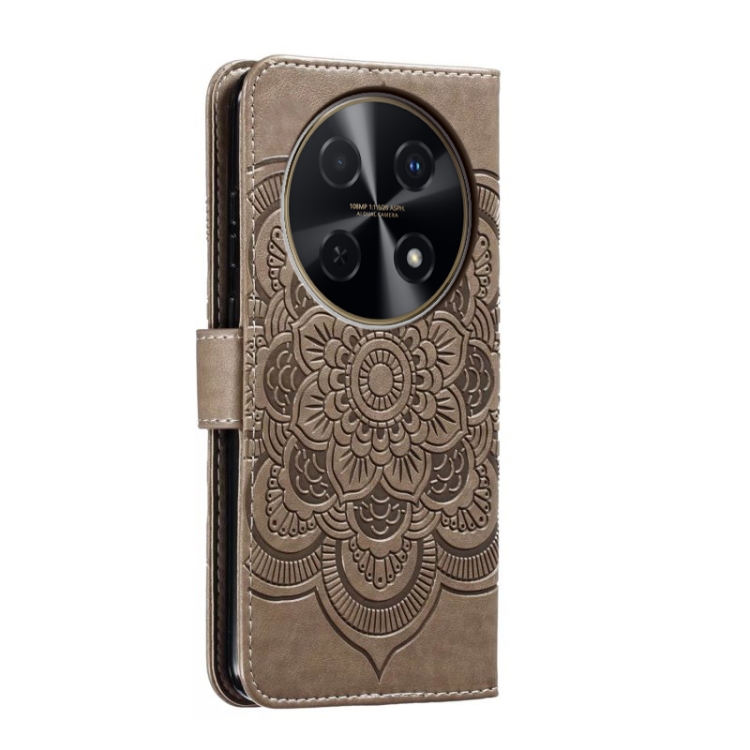 - 1x Funda de Cuero para Huawei Enjoy 70 Pro con Patrón en Relieve Sun Mandala (Gris)