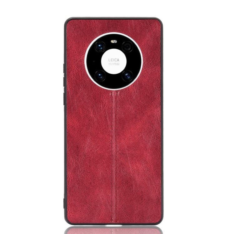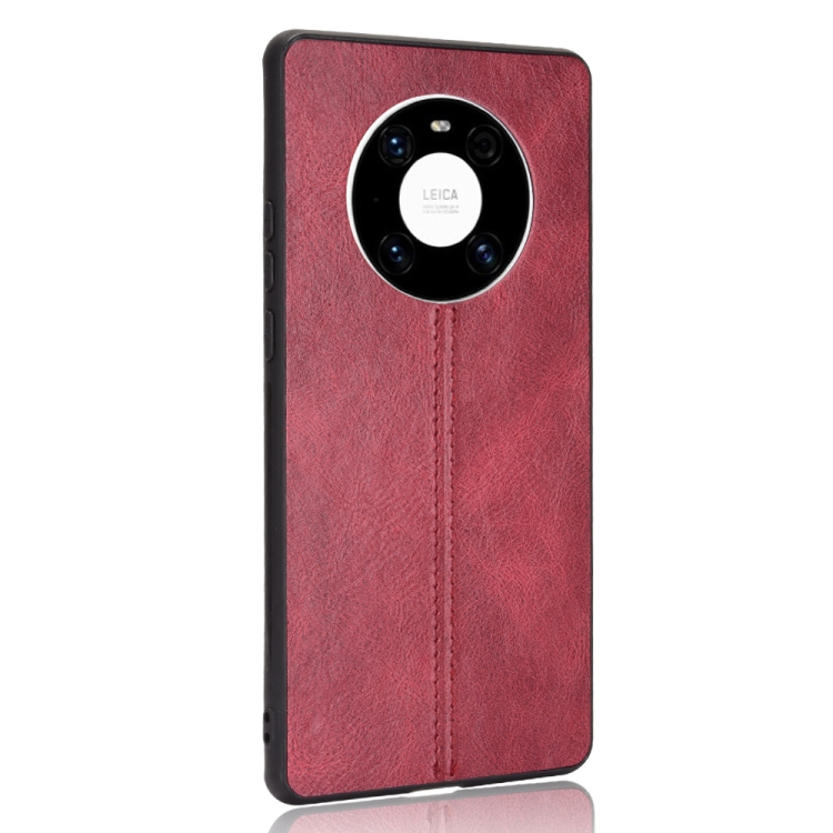 Para Huawei Mate 40 Patrón de piel de vaca de costura a prueba de golpes PC + PU + TPU Funda (rojo)