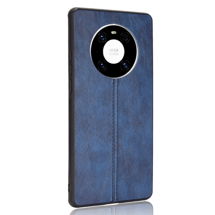 Para Huawei Mate 40 Patrón de vaca de costura a prueba de golpes Piel PC + PU + TPU Funda (Azul)
