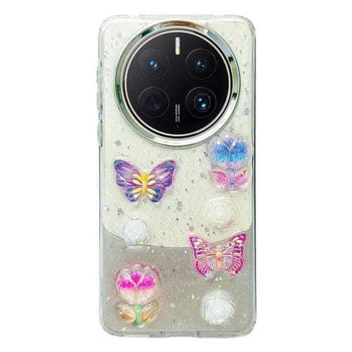 Estuche TPU para Huawei Mate 50 con Mariposas de Cristal Colorido Tridimensional (Flores de Mariposa)