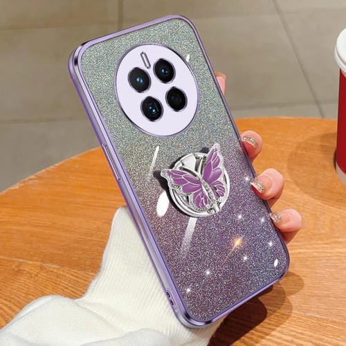 Funda TPU para Huawei Mate 50 con Soporte de Mariposa y Brillo Degradado (Púrpura)