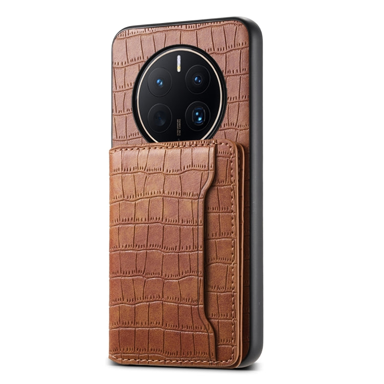 Funda para Huawei Mate 50 Pro con Diseño Bolsa para Tarjetas y Textura de Cocodrilo (Marrón)