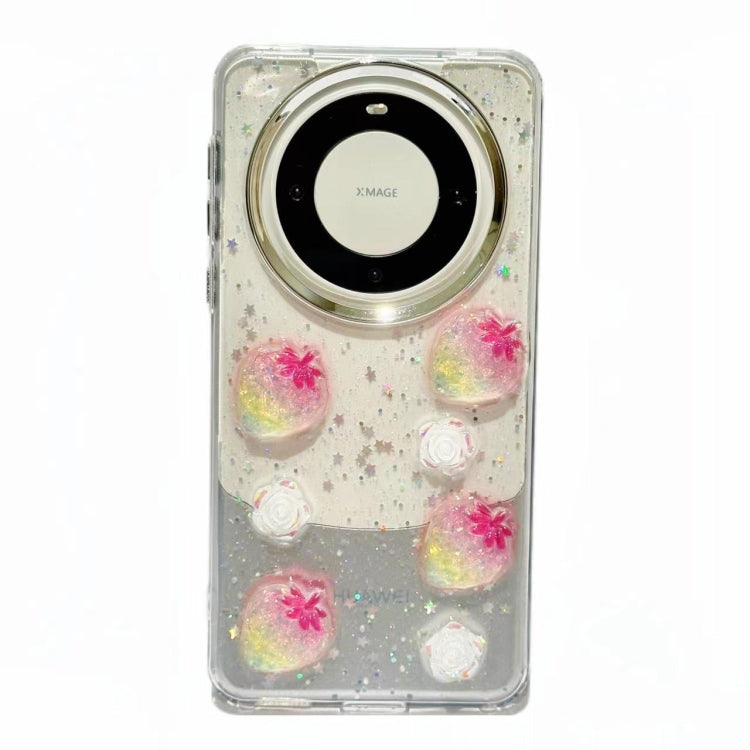 - 1x Estuche para Huawei Mate 60 TPU con Flor de Fresa 3D y Marco Galvanizado (Fresa Rosa)