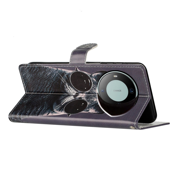 Funda de Cuero para Huawei Mate 60 con Dibujo Coloreado Gato de Gafas de Sol