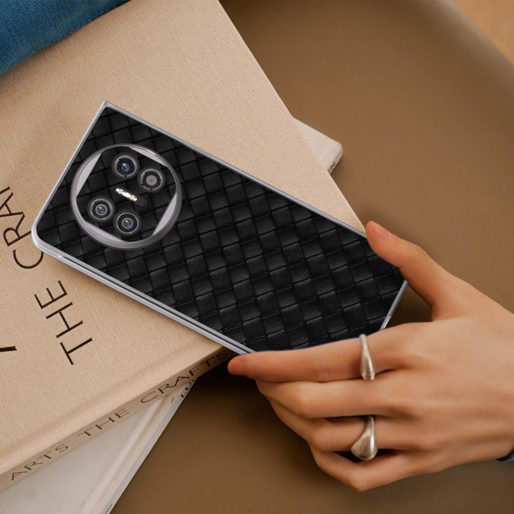 Funda para Huawei Mate X5 de PU con Marco Translúcido Esmerilado y Textura Tejida (Negro)
