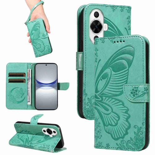 - 1x Funda para Huawei Nova 11 5G y 12S 4G de Cuero con Relieve Mariposa y Cola de Golondrina (Verde)