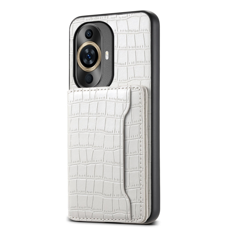 Estuche para Huawei Nova 11 con Bolsa para Tarjetas y Textura de Cocodrilo (Blanco)