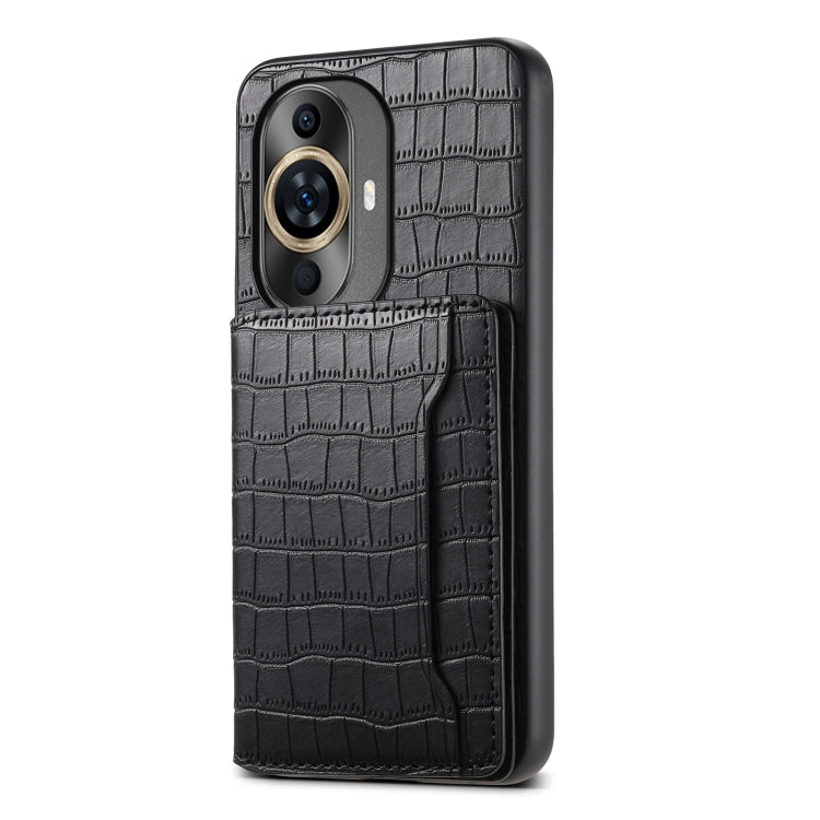 Funda para Huawei Nova 11 con Diseño Bolsa para Tarjetas y Textura de Cocodrilo (Negro)