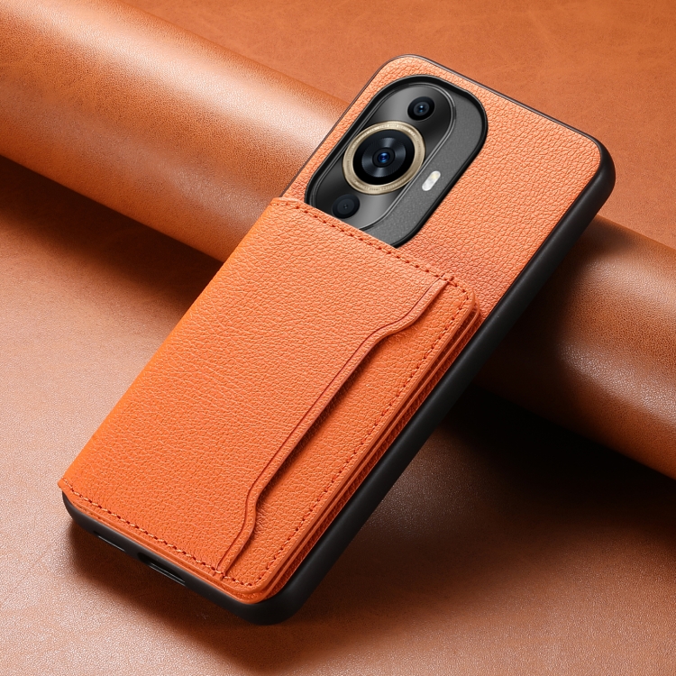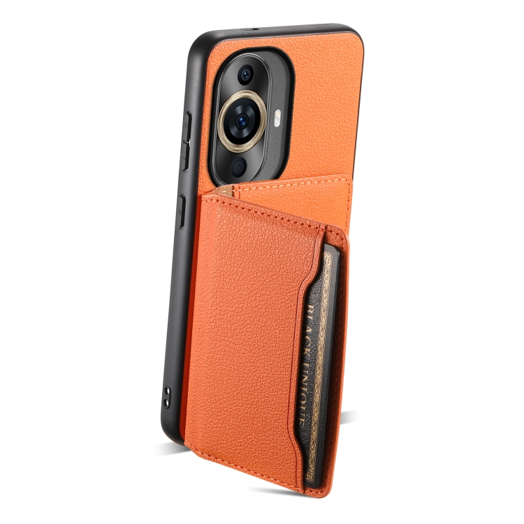 Funda para Huawei Nova 11 con Diseño Bolsa para Tarjetas y Textura de Pantorrilla (Naranja)