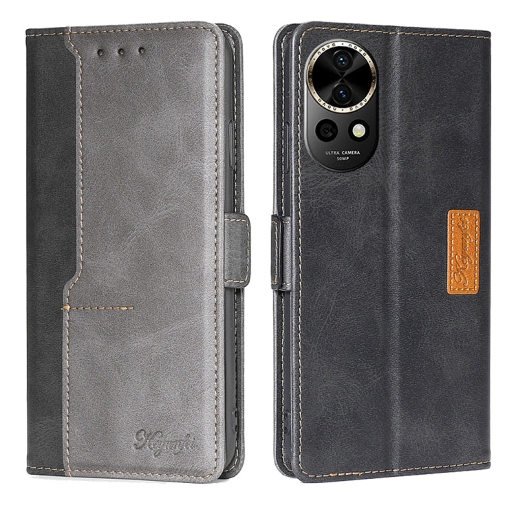 Funda de Cuero para Huawei Nova 12 5G con Hebilla Lateral y Color En Contraste (Negro + Gris)