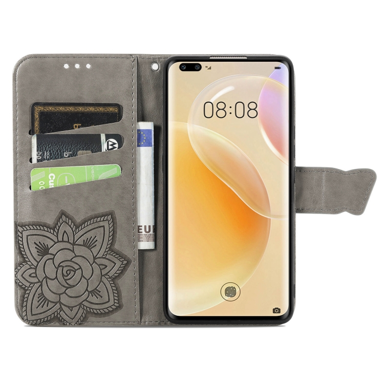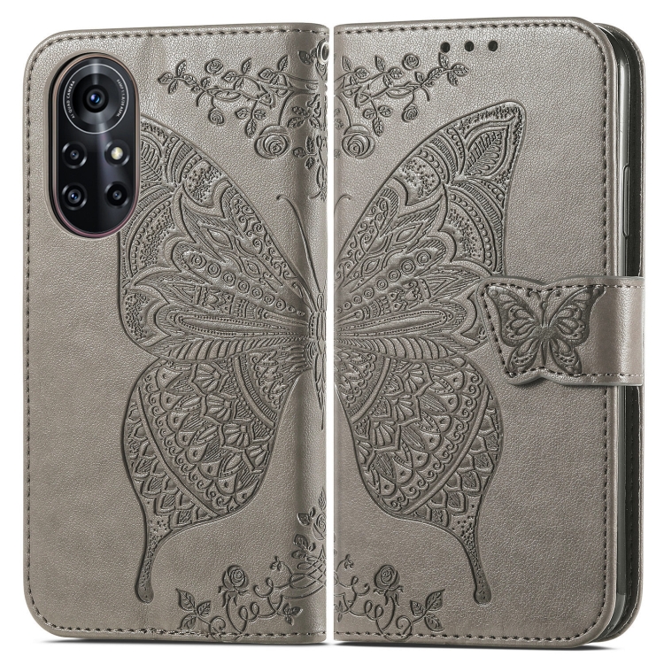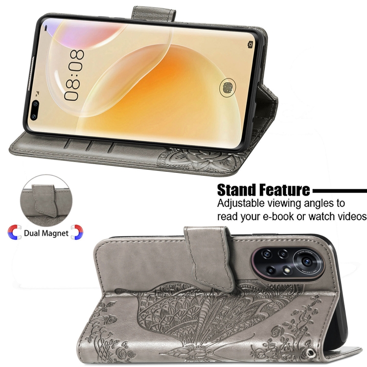 Para Huawei Nova 8 Pro Butterfly Love Flower Horizontal Flip Funda de cuero con Soporte y Tarjeta Slot & Wallet & Lanyard (Gray)