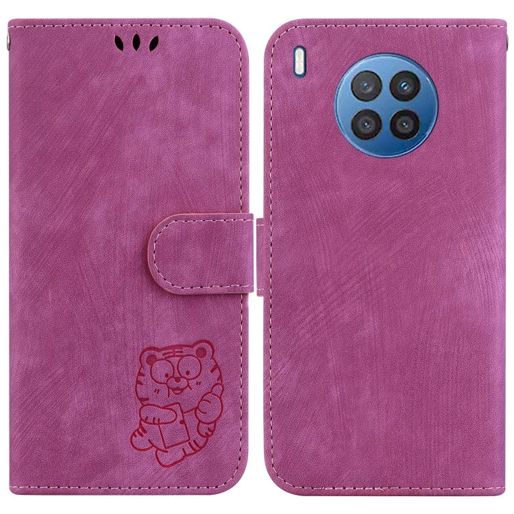 Funda para Huawei Nova 8I Honor 50 Lite Cuero con Relieve Little Tiger (Rojo Rosa)
