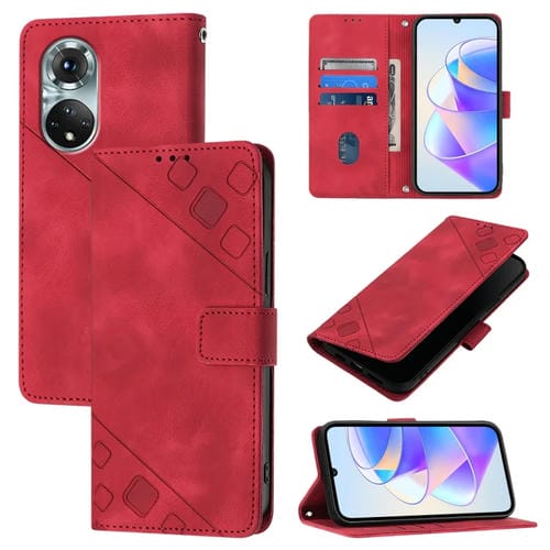 Funda de Cuero Skin Feel para Huawei Nova 9 en Relieve (Rojo)