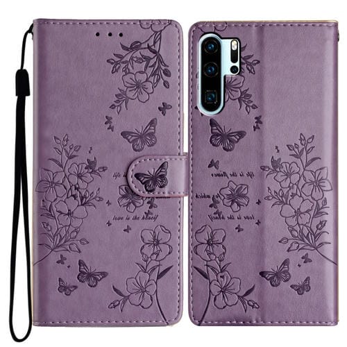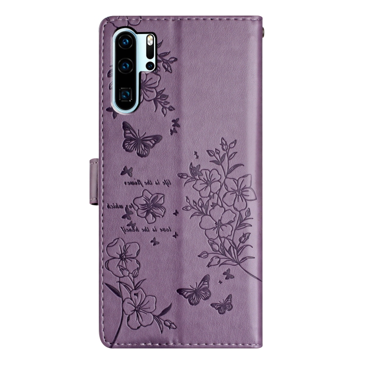 Funda de Cuero Huawei P30 Pro Butterfly Love Flower En Relieve (Púrpura)