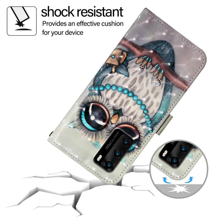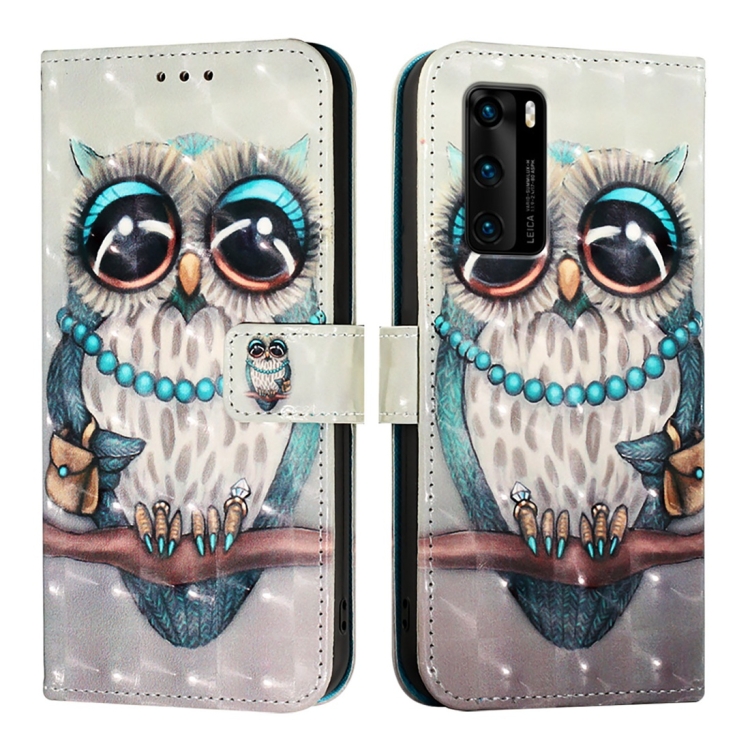- 1x Funda de Cuero para Huawei P40 con Tapa Horizontal y Pintura 3D (Búho Gris)
