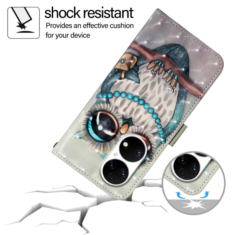 - 1x Funda de Cuero para Huawei P50 con Tapa Horizontal y Pintura 3D (Búho Gris)