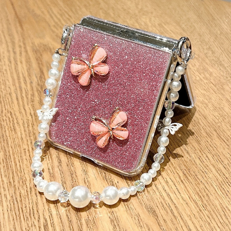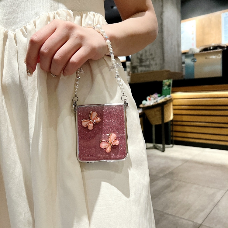 6. La hermosa caja de PC con polvo de brillo degradado con hebilla lateral tiene un patrón de mariposa 3D y un diseño de pulsera de perlas.