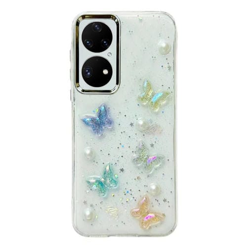 Caja de Teléfono TPU para Huawei P50 Pro 3D con Mariposa de Cristal Colorida (Mariposa Perla)