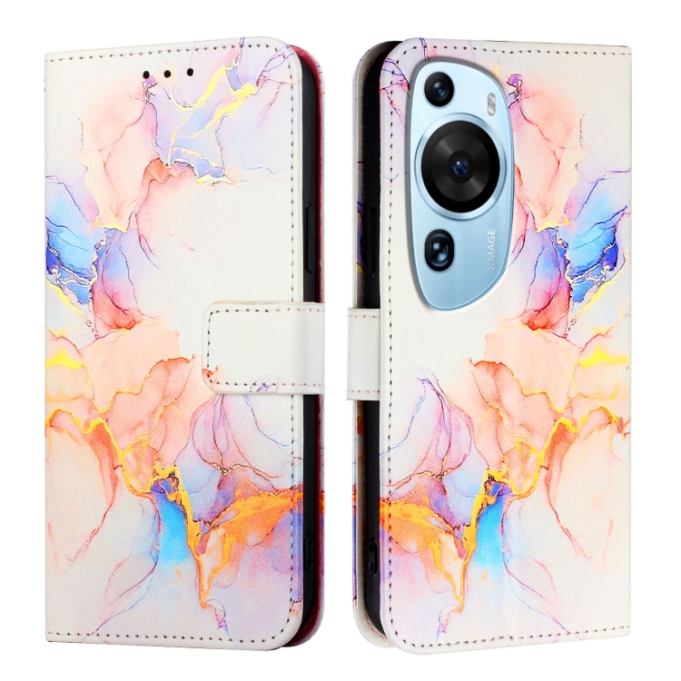 Funda de Cuero para Huawei P60 Art Pt003 con Tapa y Patrón Mármol (Blanco)